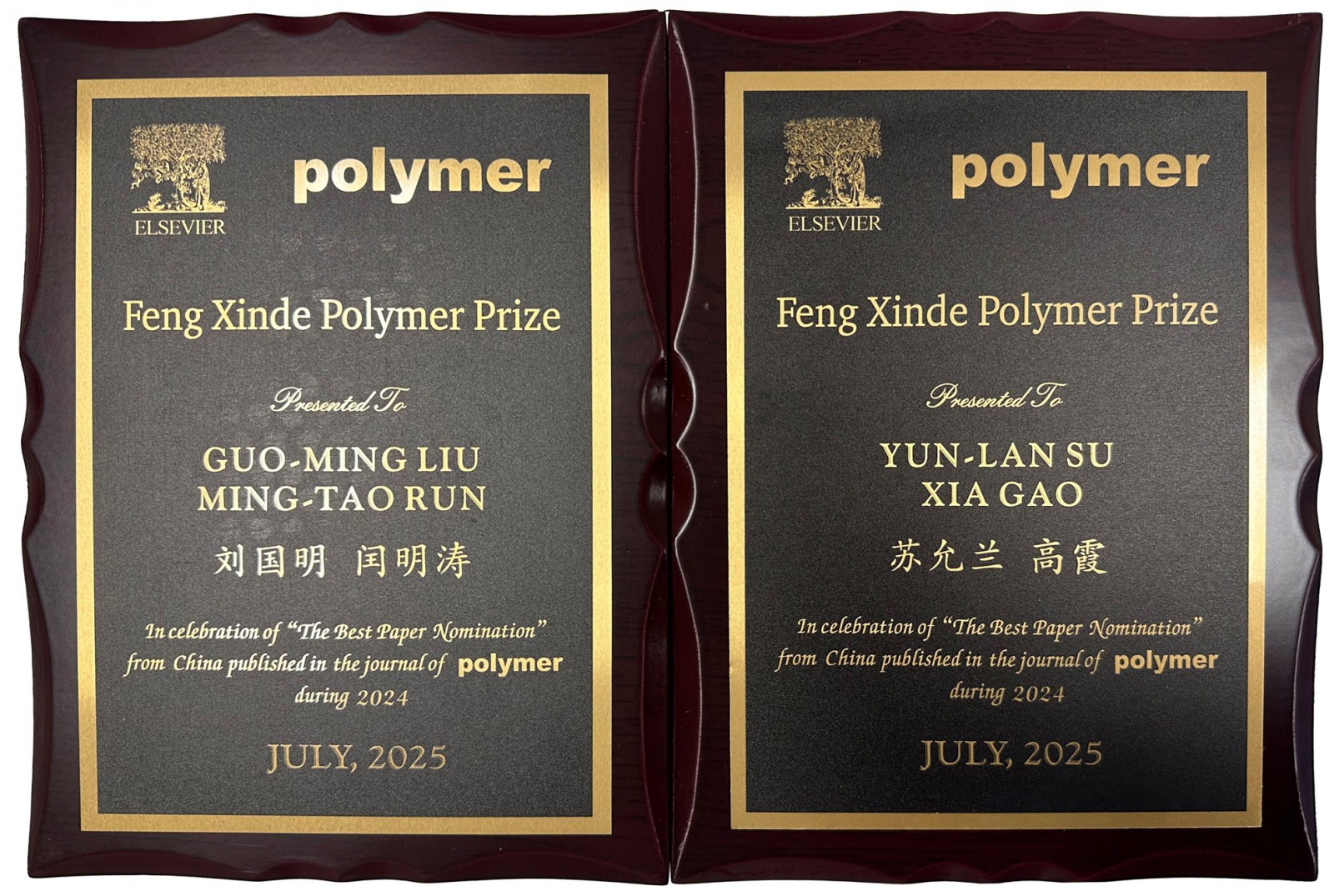 第十九届“冯新德高分子奖”获奖名单正式揭晓。评审委员会在本年度参选的 661 篇文章中,评出了 1 篇最佳文章奖,和 25 篇最佳文章提名奖。课题组刘国明研究员和苏允兰研究员获提名奖,获奖论文分别是“Effect of post-polymerization on the crystallization and melting behavior of poly(butylene terephthalate)”和“Tailoring the crystalline structures and mechanical properties of polyamide 1012 specimens by material extrusion-based additive manufacturing”。颁奖仪式于2025年10月19日在长春举行。